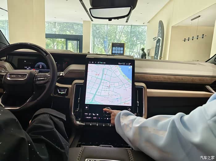打开展厅的黑色车门,其豪华的气息扑面而来,育空定位全尺寸豪华SUV,“豪华美式大平层”,不是没有道理的,艰巨家庭和行政的双重需求。