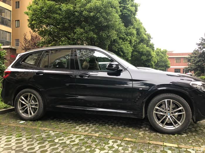 小弟92年,第一辆车是15年8月买的小凯,当时上路20万多一点,日系车确实经开,将近4年5万七千公里,就换了轮胎,其他都没换过、什么小毛病都没有、舒适度也行,但是开惯了轿车,在工地也经常刮底盘,就行换个SUV开开、刚好临近婚期,就开始选车之路,爸爸特别喜欢雷克萨斯,无奈RX15款到现在还没换代,而且加价2万,等车大个几个月,中控还行,仪表盘太low了,只有放弃,家里去年添了一辆陆地巡洋舰,也就放弃选择霸道,沃尔沃xc60 ,英菲尼迪QX50,讴歌外观挺不错的,但我们这里很多人认知度低,不值四五十万,就把目标锁定在BBA品牌。GLC刚上市的时候特别喜欢,后来单位同事上了一辆,时间长了就不感冒了,再加上论坛毛病听说很多,所以选车的时候都没去过奔驰4S店,不过新款内饰看着不错。奥迪Q5L,外观好看,比x3,GLC大气,内饰设计也可以、就是塑料件太严重、再加上所谓的双离合,最主要的还是当时开始驾车的时候、2000多公里的试驾车味道还是那么重、方向盘特别轻,虚位大,再加上顶配订不到车、销售主张订现车,而且订车优惠少,又是国五车型,放弃。所以这个价位只考虑X3了。先打算要28i豪华版的,3月份突然看到改配的信息,取消雾灯,轮毂也换丑了,感觉雾灯在外面不好安装,不好看,加装想要的配置要等4个月,刚好店里辆30i 炭黑运动、价钱还可以接受,但也不便宜啦,出厂随机选了座椅加热,配置蛮满意的、又不用等车,所以直接下定,当时都没看过炭黑色的实车,听说是光线暗是黑色、阳光下显蓝,刚好我喜欢蓝色、但老婆不喜欢,只喜欢黑色、炭黑两种颜色结合、不错。开了1000多公里,感觉非常好开,不像是在开SUV,转向也很轻盈,指向足,底盘舒适度也不错,能轻松过滤掉颠簸,动力足、尤其运动模式,推背感杠杠的,M方向盘手感极好,360全景,车机系统是我目前用过最好的。缺点是1.刹车踏板有点高,不过现在已经适应了。2.还有真皮座椅不硬,但是也不软,自带腰托,但是开长途后腰还是会有的酸。3.车划痕明显,也许是深色车漆原因。4.后期维护成本高,前面铝制车身,不能做钣金,如果被撞了只能换门,以后要小心翼翼了。上图: