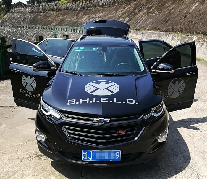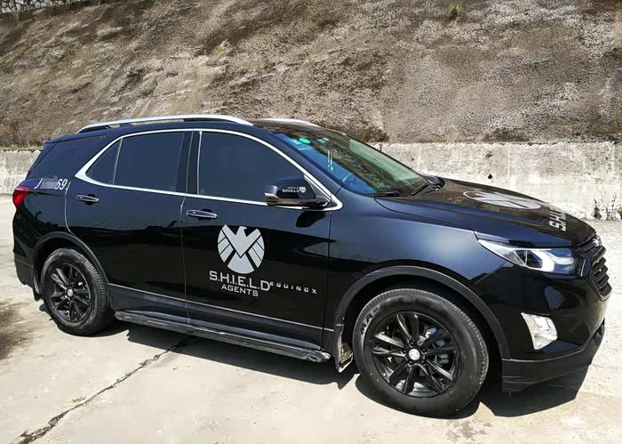 车外件:原厂轮眉,挡泥板,脚踏板,RS大嘴黑色套件,轮毂黑色可撕喷漆,五门加了门沿防撞条,神盾局贴花等等。
