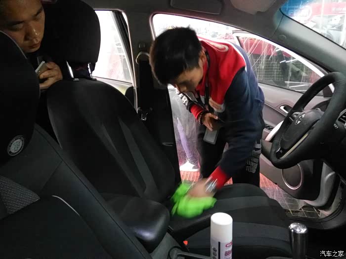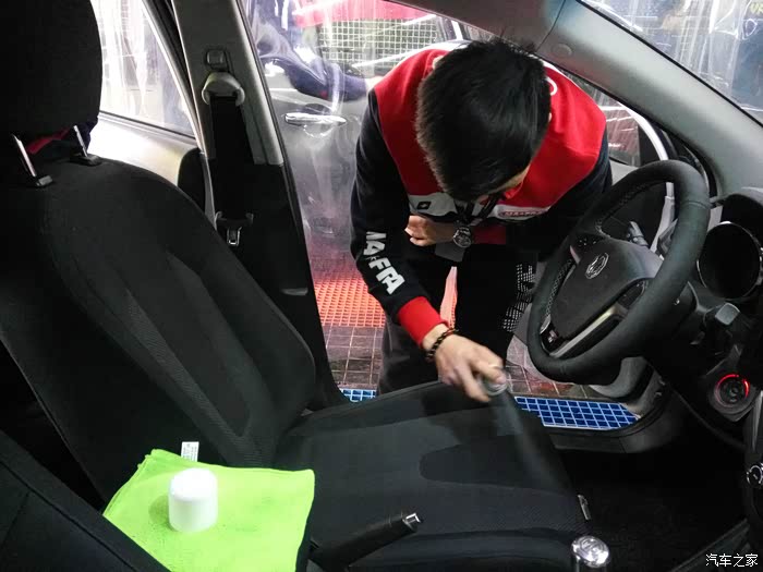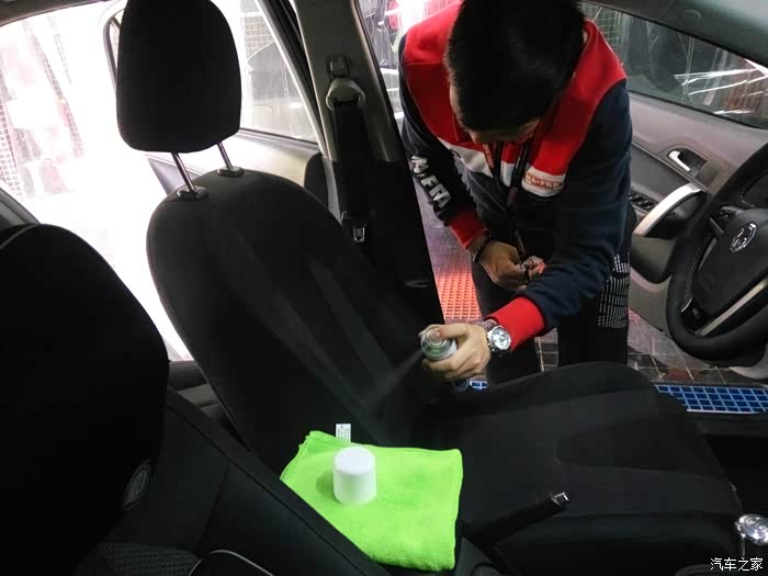 然后均匀喷上织物镀膜产品,然后等座椅表面吹干