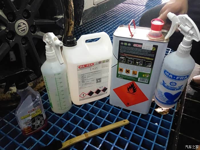 下方是所用的产品,轮胎清洁剂,轮毂清洁剂等等