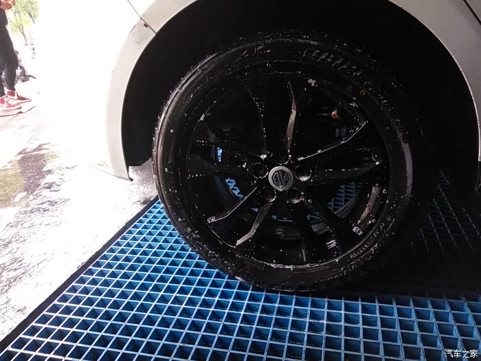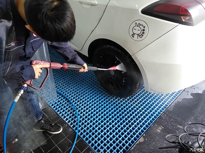 刷完之后用高压水枪冲洗轮毂,再擦拭轮毂护理剂和轮胎护理剂