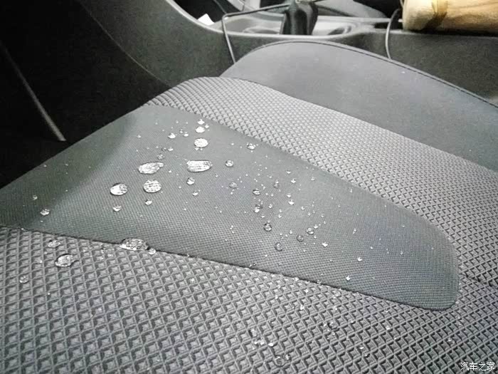 两个项目完成时间差不多,验收成果拉,下图1是未镀膜的织物座椅,水滴上去马上弄湿面料(这不是我尿车上....虽然很像....但真不是.....