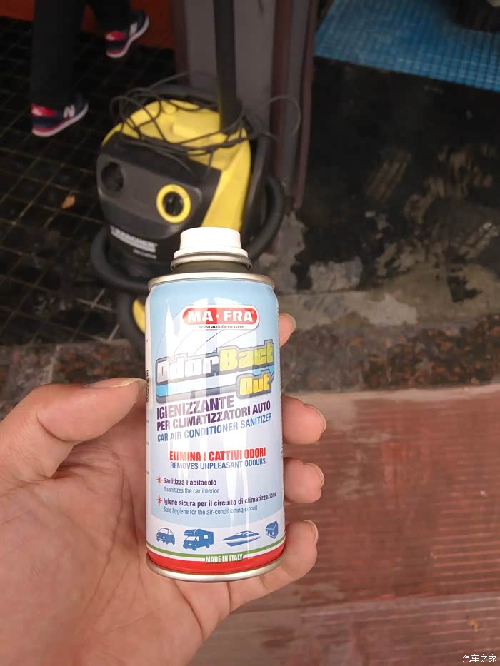 期间顺便使用空调管道清洁剂,这个东西用起来很方便,空调风开到内循环,风量最大,把一次性卡扣打开,放在副驾驶内循环进风位置,车门车窗关上,自动循环10-15分钟就可以了,可以给管道杀菌,还能去异味呢,比网上那种几块钱的管道清洁剂效果好多了,自己在家也能操作(第二张图对焦和曝光失误......)