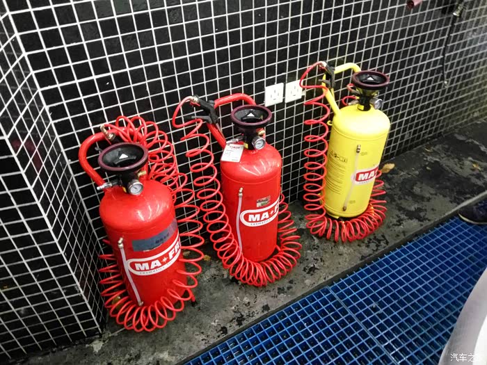 三个钢瓶分担不同角色,分别是,轮胎轮毂清洁,车身清洁,车身护理水蜡