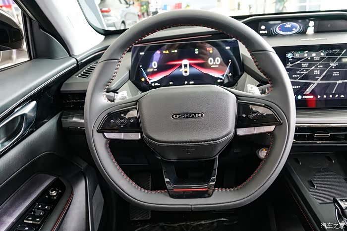 内饰方面,长安欧尚Z6同样采用全新的设计语言,三块屏幕映入眼帘确实带来不错的冲击力,液晶仪表、中控屏,以及用于显示YYDS数字孪生形象的屏幕,再加上AR-HUD抬头显示,能够实现四屏交互体验,全速自适应巡航、可开启全景天窗等等,大面积皮革材质的包裹,以及细节之处的缝线处理,加上镀铬元素的点缀,从而使其整体营造出了一种舒适且科技的内饰氛围。