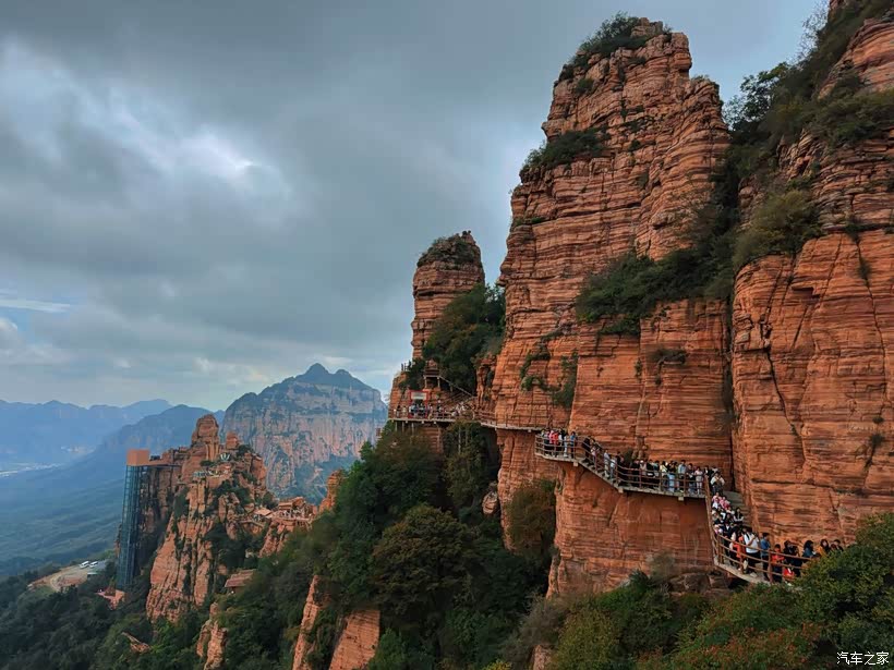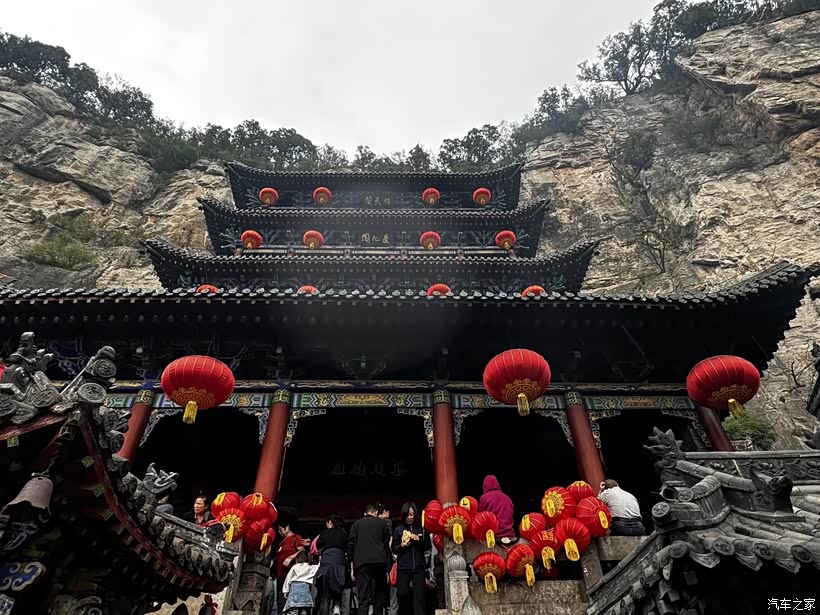 十一期间山间已有了秋日的色彩,部分树叶染上金黄与橙红,风景格外迷人。起初我还担心山路难走,但奕炫MAX的表现完全超出预期——底盘调校稳健,过弯时侧倾控制得很好,方向盘指向精准,即使是连续的急弯也能轻松应对。沿途青山连绵,层林渐染,打开车窗,清新的空气夹杂着草木与泥土的香气涌入车内,让人心情格外舒畅。下午五点多抵达苍岩山,我们穿过景区服务中心,直接将车开到景区门口,省去了坐摆渡车的麻烦。此时的苍岩山被暮色笼罩,郁郁葱葱的植被间点缀着红墙庙宇,秋日的余晖为山峰镀上一层暖光,显得格外秀美。60元的门票不算贵,更惊喜的是凭“黑悟空通关文牒”能终生免费入园,同行的朋友当即决定下次再来打卡。沿着山间步道漫步,听着泉水叮咚,看着远处的山峰在夕阳下渐渐染上金边,一天的疲惫都被这山间的宁静治愈了。