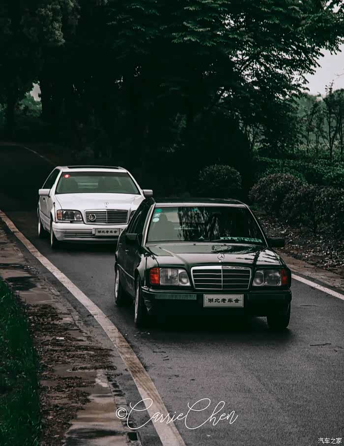 本期主角其实是图右新整备的W124,这台W124和之前发的不是一台车。上一台是手波,这台是自动。因为会长很喜欢它,所以又弄来了一台,做了一样的漆,墨绿色真的很好看!这一台的姿态比手波的好看一些。整备了大概三个月,内饰深棕色是从HK拆车件拔下来的,估计国内没有几台有这个颜色的内饰,我个人也很喜欢。