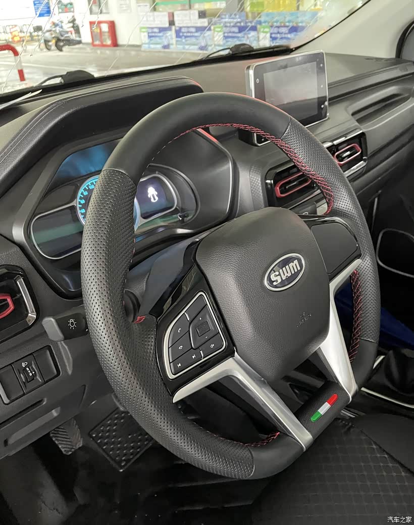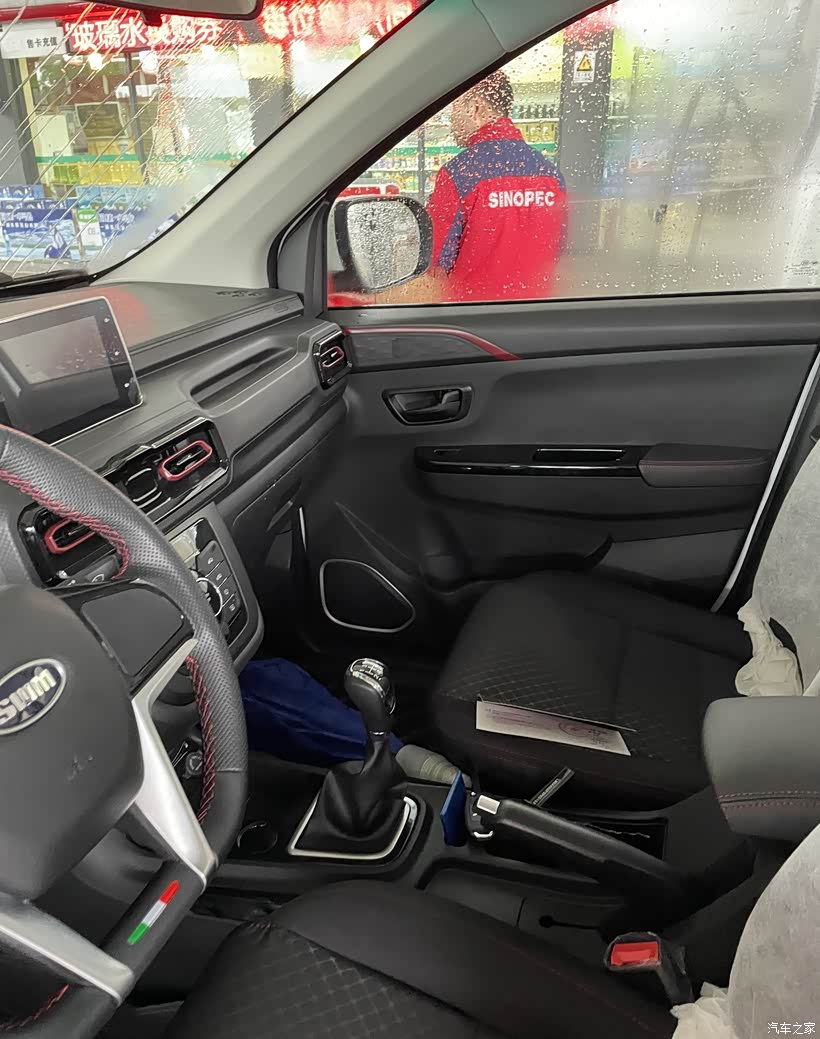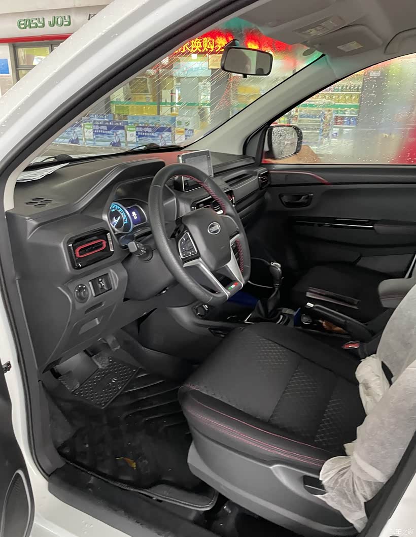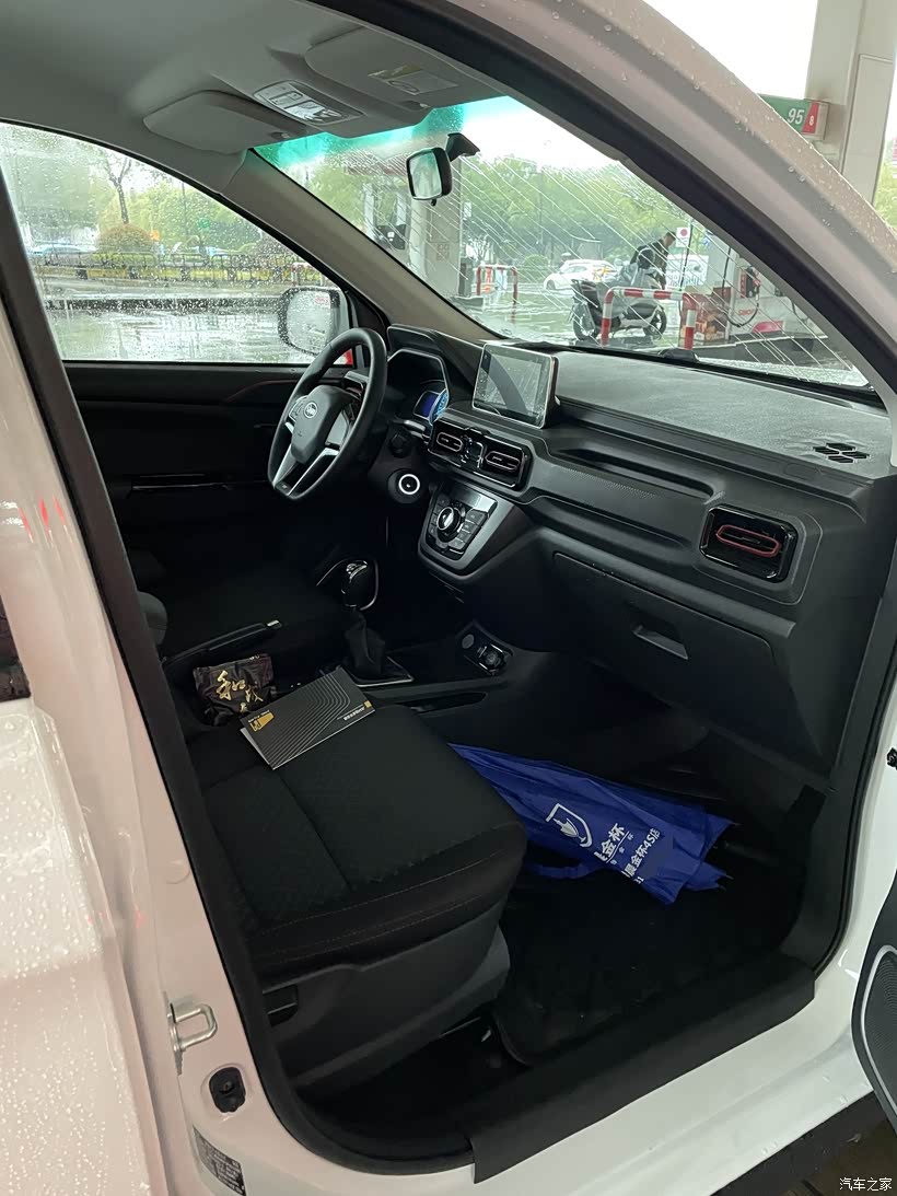 座椅虽然说是布座椅,但是透气性还是不错的,而且包裹的很紧实,主副驾驶也都带。有安全气囊,车内也有小的储物空间,放水杯这些都有地方。