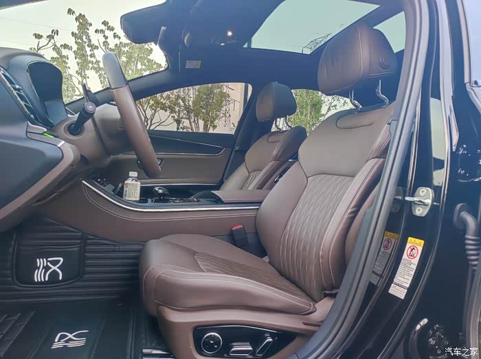 内饰看起来高级又精致,皮质方向盘握感不错,功能按键排列清晰,而且中央还有个汉logo,满满的中国风元素,车内还采用了大面积软包的材质,在细节处也设计的到位。