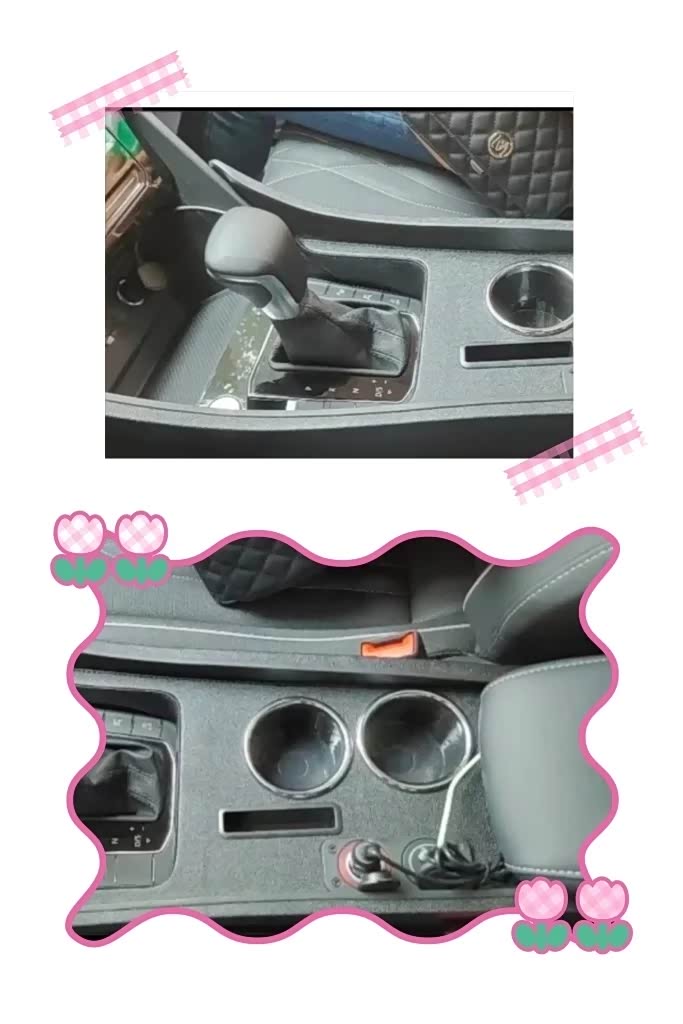 7、中控扶手箱中央通道加装。有两个水杯槽,一个手机卡片槽,两个USB快充接口,一个大功率点烟器接孔。