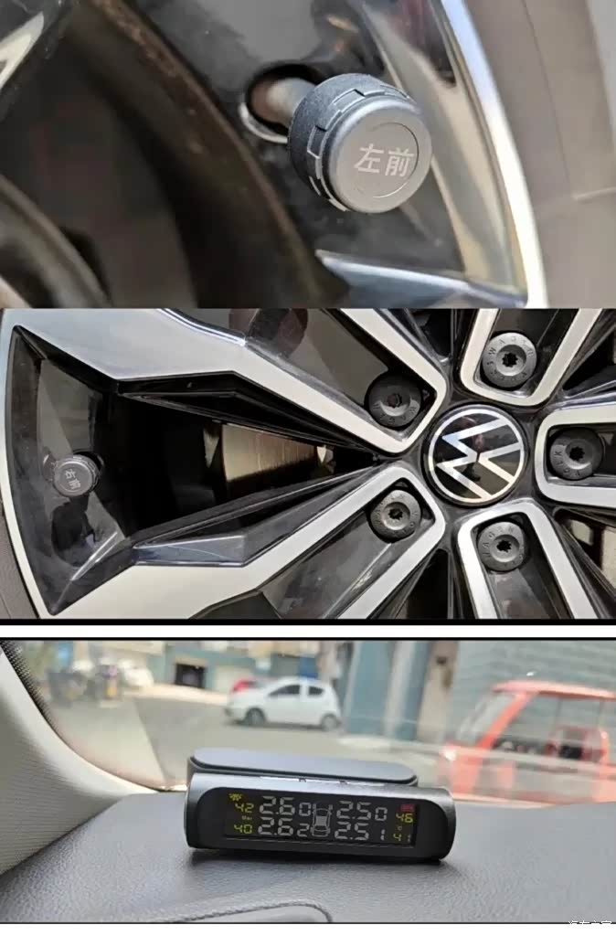 13、外置无线太阳能胎压监测显示仪。外置传感器,数码显示直观。可太阳能充电,也可数据线充电。亲自见证,三个月左右,胎压由2.6降到2.2,可以有效警示及时加气。