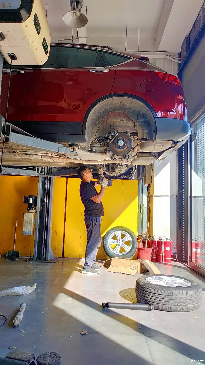 师傅立马开工,先更换减震器,必须🉐拆车轮,开始以为不拆也能换,实际不成!