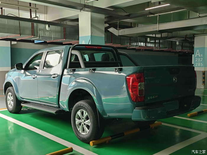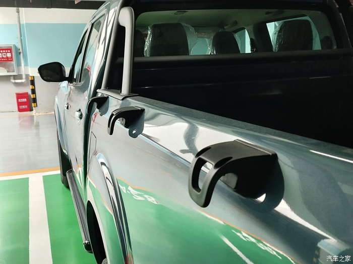 车尾没有车头那么好看,不过,整体也是以简洁、实用为主。尾灯更是双色的布局,将尾灯点亮后,一到晚上,识别度还是挺高的。另外,后保险杠的两侧都设计了踏板,方便上下货箱,重要的是踏板的位置还使用了镀铬装饰,带着一丝精致感。而货箱门铰链经过了加强,两侧又配了6个固定的锚点,实用性一下子就增强了。不过,对于俺来说,货箱容量大不大,倒没那么关注,重点是开着这车出去带感、拉风!上周末开着这车回丈母娘家里给她拉了一趟农货,很稳。