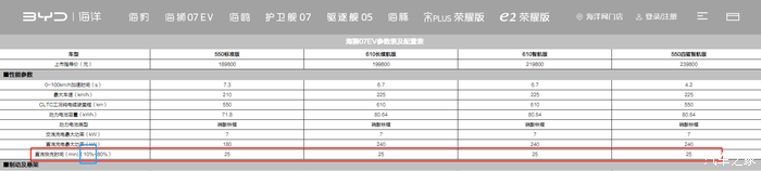 关于充电时间,找了一下这几个车型的官方数据表和网上博主实测如下: