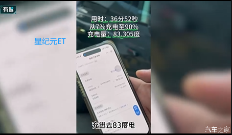 星纪元ET:100度三元锂电池,从7%充到90%用时37分钟,充了83度电(其中80%到90%用时8分钟,根据这个参数推断最后10%如果不降速37+8=45分钟)