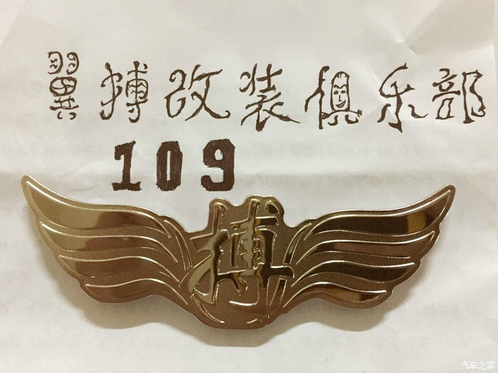 把『翼搏改装俱乐部』的专属金属“搏”字车标重新装上