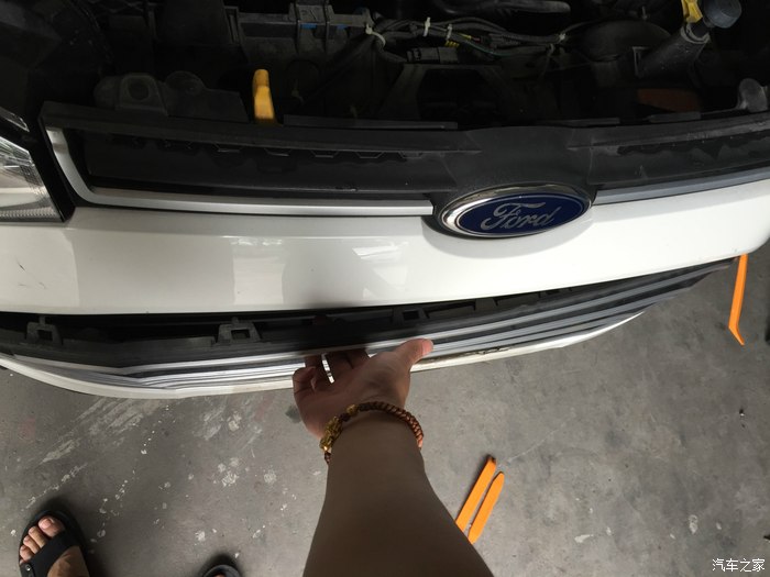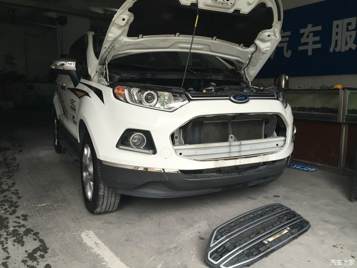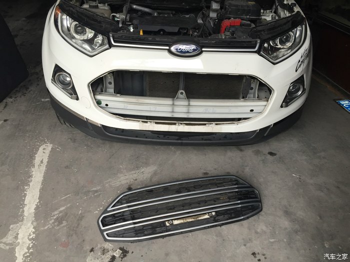 去小区楼下的洗车店洗车后,开始自己动手拆装原装中网
