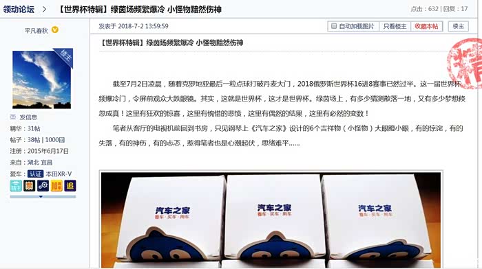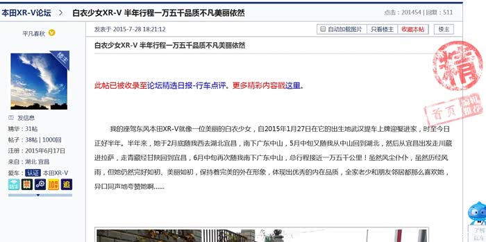 在看车和选车的过程中,侄儿多次跟我提到汽车之家网站的一些推介和评论文章值得一看,他说现在您有车了,可以经常上汽车之家网站去玩玩。于是,我偶尔就会到汽车之家网站浏览文章,看看图片。看多了,慢慢就有参与其中的想法了:哦,原来图是这样发,帖是这样写,又有何难?