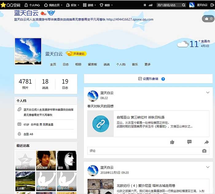 十多年前我在申请QQ账号的时候,注册网名是“蓝天白云”, 创立QQ空间的时候系统给了30个字的位置让写个性化签名,我便以“蓝天白云”为引子写了一首打油诗:
