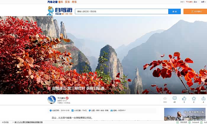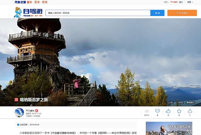 像我们这些既爱车又好摄的男人(当然也有女人)都青睐汽车之家,原因何在呢?就因为《自驾游》这个栏目的存在啊!举个例子吧。12年前我先后在北京、上海和武汉工作,最后从武汉的岗位上退休,这期间我曾经注册了多个当地的摄影图片网站,但无一例外的都是红火了三五年之后招呼都不打一个就悄然倒闭,连我们发表在上面的图文资料都无从查找!而汽车之家十五年来却越做越火,特别是《自驾游》(曾经叫《旅行家》)这个栏目越做越大,为什么呢?这里云集了一大批既喜欢自驾又能产出高质量图文的作者呀!信任你,依赖你,离开你活得不精彩,这才是关键啊!