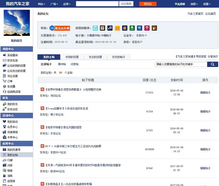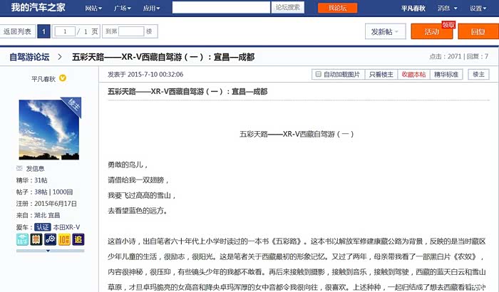 后来我在注册汽车之家ID的时候也想沿用“蓝天白云”这个名字,但系统显示与别人撞名必须另取,于是乎就用了那首打油诗的最后一句“平凡春秋”作为自己在家家的昵称。