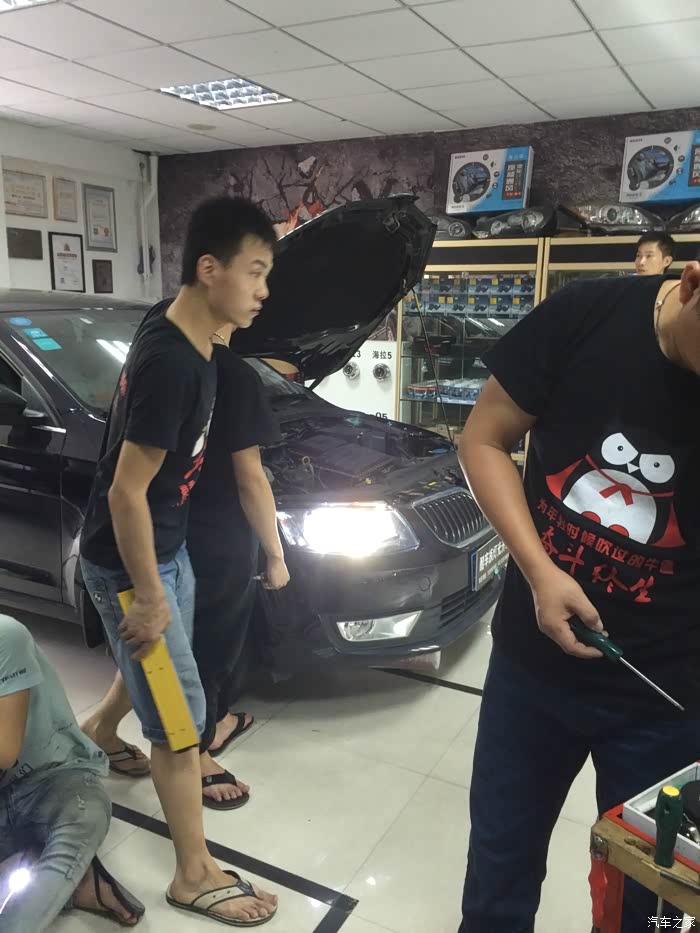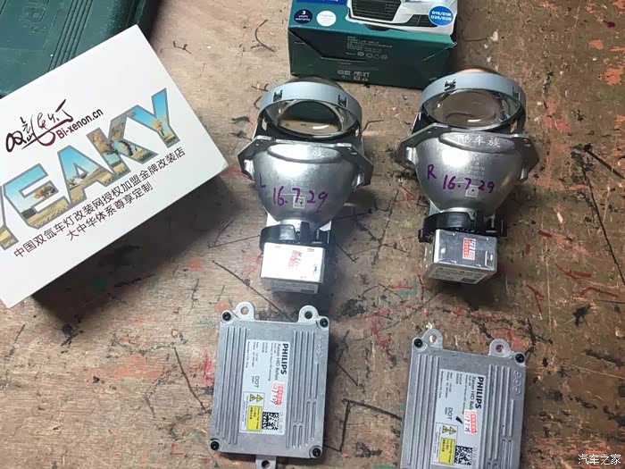 。听老板说这个欧司朗4300K的氙灯是豪华品牌车厂标配最好的光源,不过经过对比,前几分钟亮度还可以,但是过了不到一分钟光源直接发黄,最后直接把欧司朗氙灯换成岩崎,亮度确实不发黄了,但这价格也加了小几百。