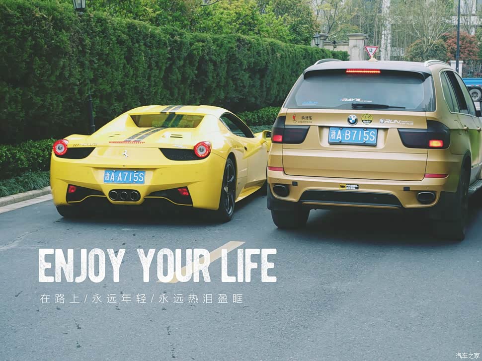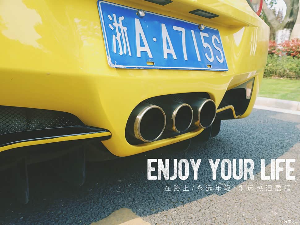 买来之后不久,我就把车身的颜色改了。但我不是重新喷漆了,二是帖了一层膜。因为我个人非常喜欢黄色(大家不要想歪),所以找了很多改装店,最后在一家找到了我非常中意的黄色,最终的效果大家可以看帖子最后法拉利和X5的合影。法拉利是惊艳的黄,而X5是低调的黄。其实改颜色没有大家想象的那么难,先去车管所确认一下是否可以改成这个颜色,如果说可以改,那就直接动手。如果不能,那就换个颜色。改完之后,花个十几块钱去车管所重新做一本行驶证就行了。