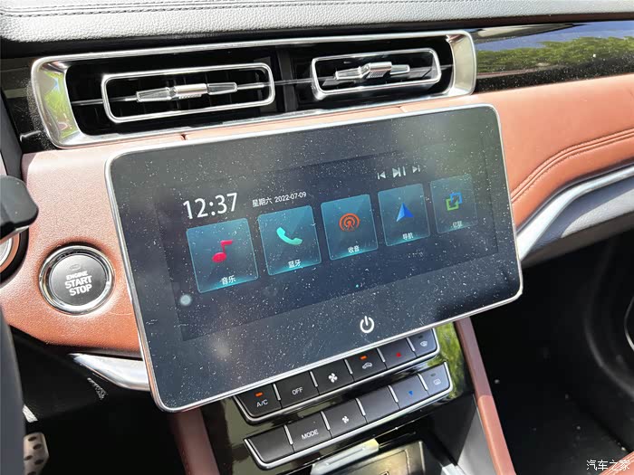 中控大屏的样子。并不是很大,像一个平板一样,用起来稍微有点卡,特别是切换倒挡的时候,有时候反应速度有点慢,可能是装的东西太多了,我觉得应该把大屏升级一下,目前还没有升级的推送,