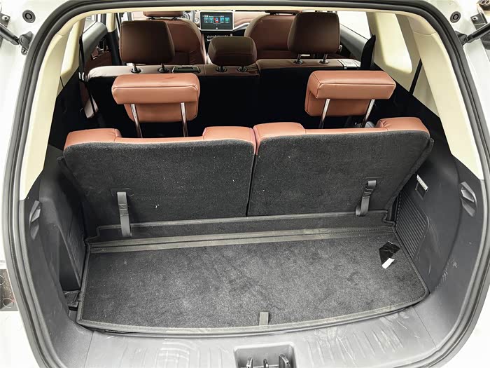 把第三排座椅拉起来之后,备箱的空间一般般。但是把座椅放倒之后就是一个非常大的一个后备箱