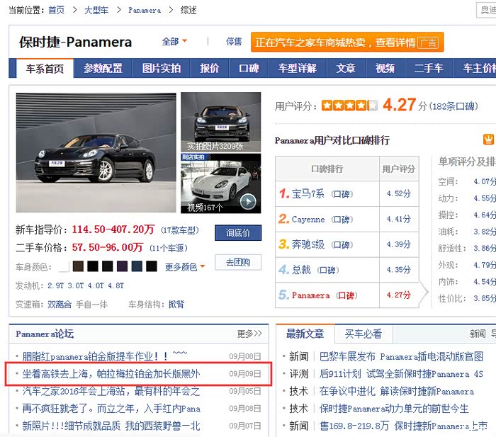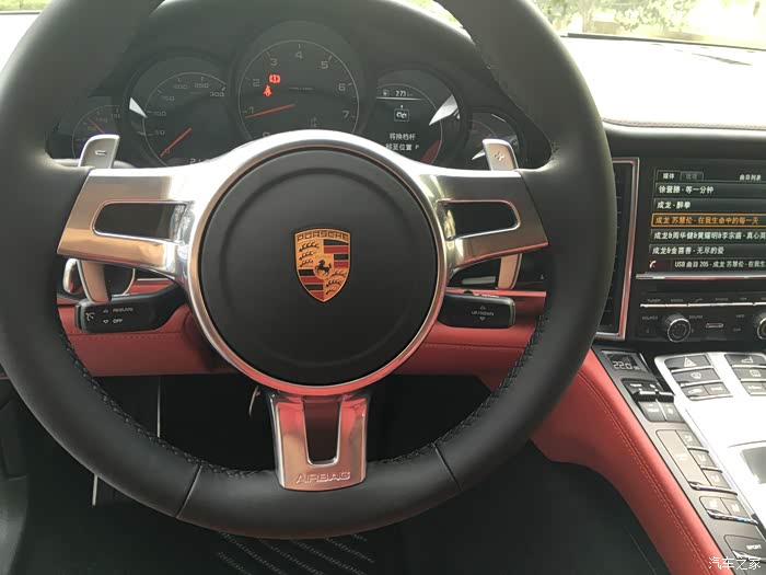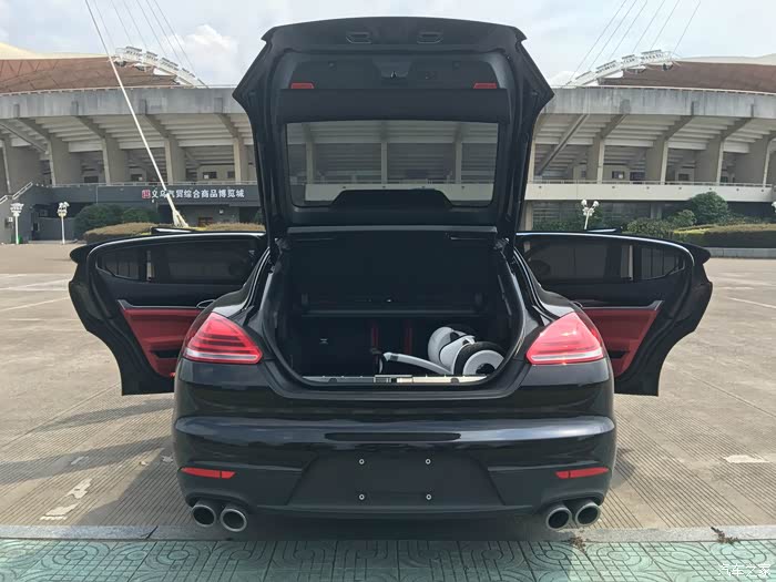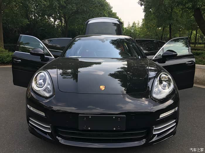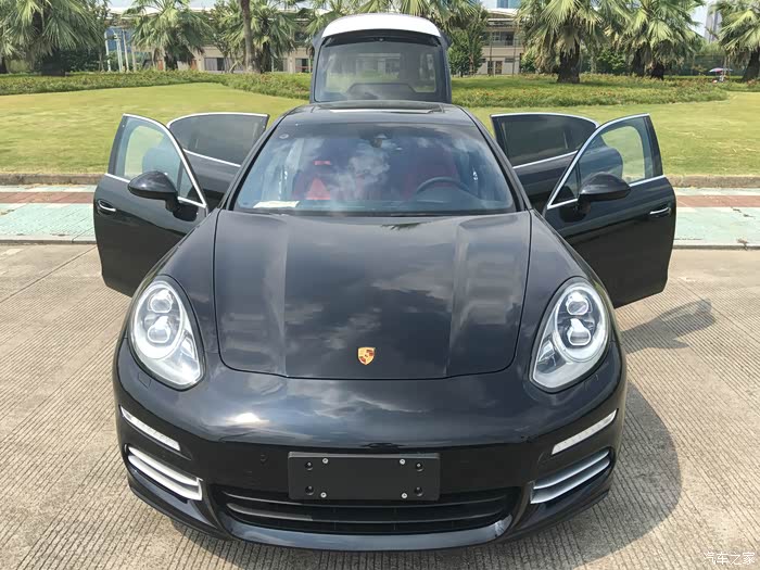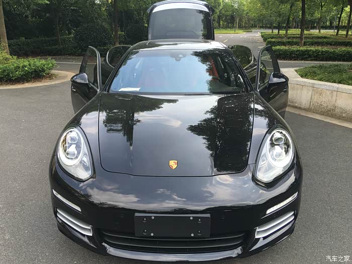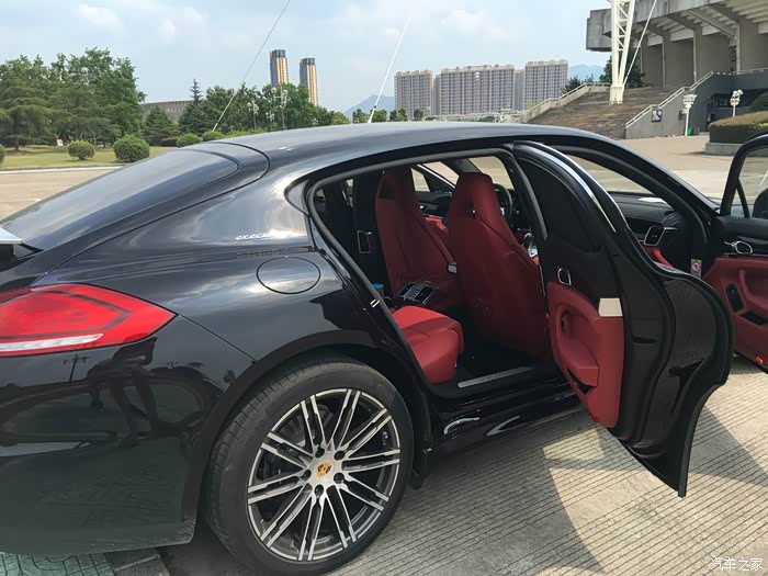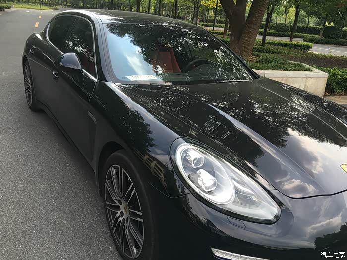 选车经历:我弟他本来有台Q5,快5年跑了10W公里左右,大毛病没有,很给力,也没遇到过烧机油现象,可能他平时用车保养比较细心吧,不得不说Q5确实是台好车。也能继续服役,平时到路况不太好的地方或者上山游玩,也能充当越野车的角色。所以这次也不是说要换车,而是再添置一台车,目标很明确:越野车开久了就像坐个高凳子,视线确实好,开着确实给力,但跑高速长途舒适性和豪华感肯定不能和轿车比,所以豪华大气运动舒适就成了必要条件,之前他看过玛莎拉蒂也去试驾过,声浪确实牛,但是声浪说实话有点过,车的隔音不是很好,坐在车内那个声浪一直在耳边响着,内饰也太简单了,好歹也算是百万级豪车了,虽说具有意大利贵族血统,但内饰设计和静谧性感觉对不起这个价,个人感觉有点小众,所以PASS了。说实话看看保时捷的内饰,BBA都不用去看了,奔驰S级这里说下,的确也很豪华,各方面也都很棒,7系卖不过S级也是有原因的,但是奔驰S级说实话感觉并不太年轻,有点太过于成熟。所以就没去奔驰的4S看车。也PASS了。就只有保时捷了,品牌,动力,操控性,豪华舒适运动都有了,帕拉梅拉就是这台西装猛兽!最终确定Panamera Executive Edition 铂金加长版,车子确定以后就开始找车,我弟想要黑色,之前大家都推荐桃红木,后来发现桃红木不是很耐看,也不耐脏,所以没选,白色显得车太大了,没有黑色来得沉稳大气,内饰选定黑色/石榴红双色,黑外红内,经典搭配,感觉这样的搭配永远不会过时,也耐看,也绝对值这个价,而且车顶内衬是黑灰色的,很耐脏,比较人性化。总之黑红搭配得很艺术,不像有些车的红内饰,从车顶到脚底,全都是红色,太俗气了。然后就是找车,找车的过程也很曲折,打听了金华,杭州,温州的4S还有各车行,居然没有黑外红内的现车,4S也被告知现在不能下个性化订单订车,说是要为新款马上要上市(为什么不等新款?这里也说明下,之前是一直在等新款的消息,新款尾部确实更运动,采用全新平台,更轻量化,像四门版的911,尾翼也超帅,但新款内饰变成像有车友说的电磁炉设计了,原来的机械按键都就成触摸的了,话说按键多也是保时捷的经典设计啊,特别是后排按键也减少显得没以前那么豪华了,虽说新款内饰设计也算是进步也不错,但我弟说有点不适应,不太喜欢,而且等上市再下订,等得时间太久,价格也高,下来可能200W了,不如现款,早买早享受,优惠也比较大,所以就现款了),不给下订单,要么只能选在途车或者现车,但都没这样的配置,很头疼。后来在找到杭州西湖边的一家车行,口口声声说能下订,给的优惠点数也高,签了订车合同交了订金,结果最后发现这是一家搞金融的公司,最后闹得很不愉快,退了订金继续找车,后来到上海一家很大的保时捷4S,说有辆在途车快到港口了,铂金加长,黑外红内,升级版LED大灯,运动型尾管,刚好车轮也是想要的20寸911车轮,这个911车轮要感谢温州车友mylove_panamera的推荐,也是在之家认识的,之前没想过要哪款车轮,温州车友强烈推荐这款车轮,看了实际效果确实很赞!感谢温州车友!(而且温州车友订的车子也快到了,也是同款,他订车订得早,是个性化定制选装了柏林之声音响,有机会一定要去体验下,同时期待温州车友的作业!)但是这个车没有全影,感觉有点遗憾,因为车子大,底盘低,没全影的话有时候不太好判断,这有点美中不足。但如果开车仔细的话,也不是问题,所以我弟决定就它了。因为找这个配置的车不容易,所以优惠点数也没要求太多,想着优惠差不多就行了,毕竟跑了那么多店,也都问过,也不可能太低。后来想想,用心去谈的话,应该可以再低一两个点,不过这都无所谓了,找到想要的车才是最重要的。