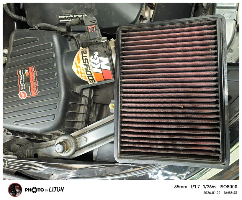 2026年元月22日,总里程141198公里(上一次清洗更换时间2025年9月13日,总里程133231公里,KN上车,eddystar拆下清洗待用)。