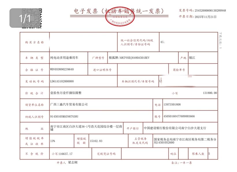 大家好,我是南宁的极狐阿尔法T5车主,2025年11月(年前)提车至今刚好两个月,今天带着购车发票来分享我的真实购车和用车体验,把补贴、赠品、省钱技巧一次性说清楚,给准备入手的车友们做个参考!