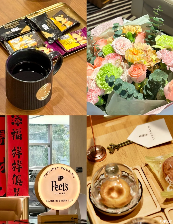 周末提车那天店里准备得很用心,车上的喜结,交车间的饮品和鲜花,也是满满的仪式感。有时候这东西不在多,而是那份细心都让人挺舒服的。