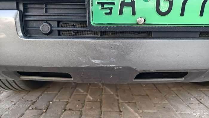 铁柱子是直接深埋地下,异常坚固,不是那种打在地表面的螺丝固定。直接将左前护杠怼凹进去了。