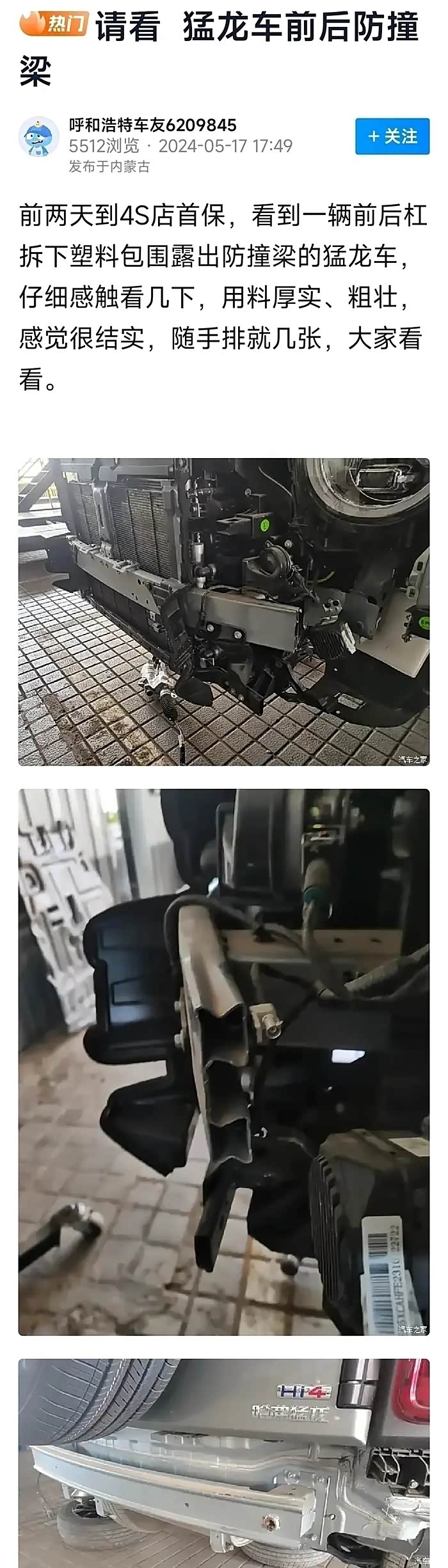 前脸都拆下来了,可以看到防撞梁也很大很厚实。