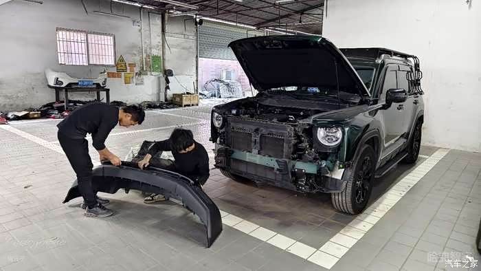 前杠确实不好拆开,师傅也是捣鼓了一会,终于将旧件掰下来,长城用心良苦,考虑到后期碰撞的维修成本,所以才没有安装前雷达和雾灯,保证用户维修的时候少掏钱!!
