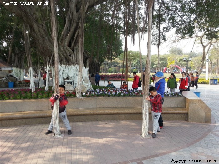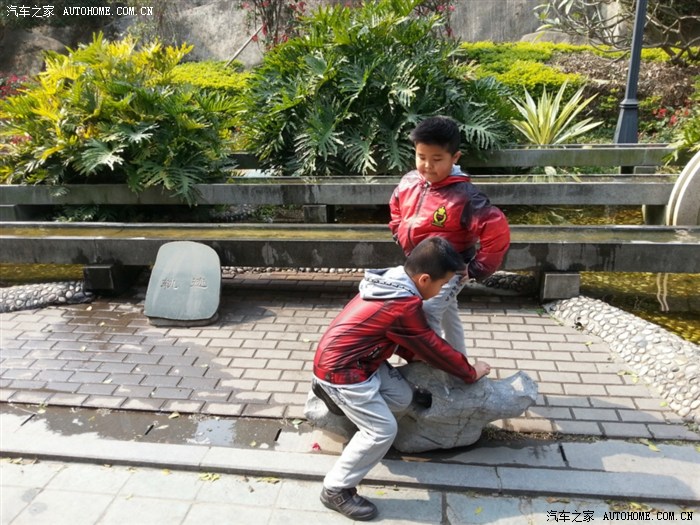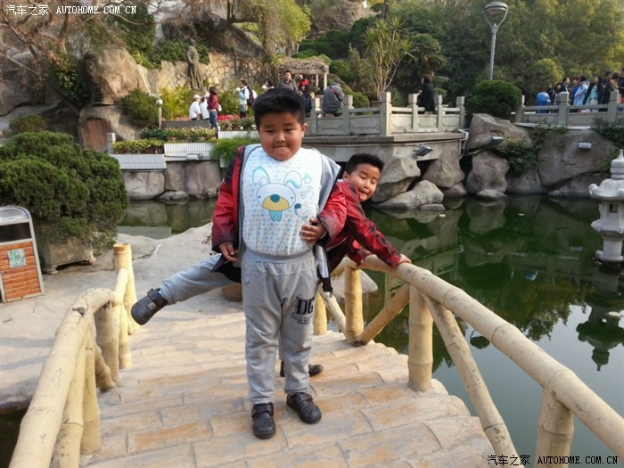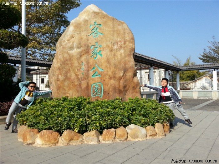 吃饱喝足客家公园逛逛,太阳比较大,弟弟臭美地上了太阳镜。