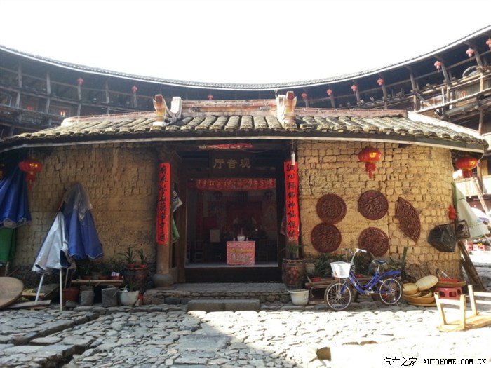 观景的时候遇到一个热情的当地人大姐搭客,就跟她去看看。远观变成了近距离接触,土楼里一楼天井搭厨房,