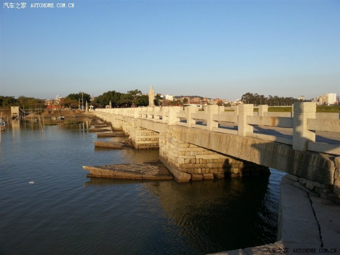 手心却赫然写个“醋”字。夏得海慌忙踉踉跄跄回府衙,向太守禀报。蔡襄正为桥基难奠愁眉不展,一见“醋”字,顿然大悟:这“醋”字拆开来不就是“廿一日酉时”么?分明是海神暗示退潮的时辰!蔡襄转忧为喜,立刻差人在四城门头张贴布告,谕令洛阳江两岸民众和工匠,火速做好奠基的准备。廿一日酉时,汹涌的海潮果然退尽,整个江底裸露无遗。蔡襄亲自指挥数千工匠抛石奠基、砌筑桥墩,洛阳江畔车水马龙,穿梭不息。一座座坚固的桥墩巍然屹立在江中。可是到了砌筑第四十六座桥墩时,江边的石头已经用尽,如果不能赶在海水退潮三日的期限内把最后一座桥墩造好,一旦海潮呼啸而来,就会冲毁桥基,前功尽弃!就在紧急关头,恰巧八仙中的吕洞宾驾云漫游经过这里,他深为蔡襄建桥的非凡气魄所感动,不慌不忙地飘落万安山上,轻轻把拂尘一挥,顿时漫山顽石皆点头。又一挥,山上所有的岩石跃然而起;再一挥,一块块大石全变成“猪母”,成群结队奔下山来,跑到海滩,纷纷跳进建造桥墩的江底。转眼间,这些“猪母”又都化作大石头层层堆叠起来。有一只“猪母”,不小心跌伤了一条腿,走得慢,落在后头,赶到江边时,最后一座桥墩已经造好了。它只好卧在旁边,成为一块躯体肥硕的“猪母石”。