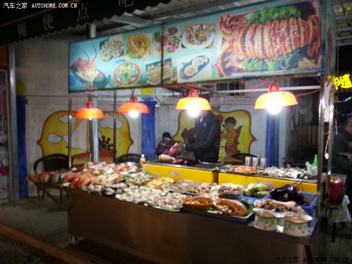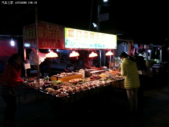 回到县城已经晚上7点钟,大排档开吃。来来来,介绍我们客家的美食,脆皮大肠,香!