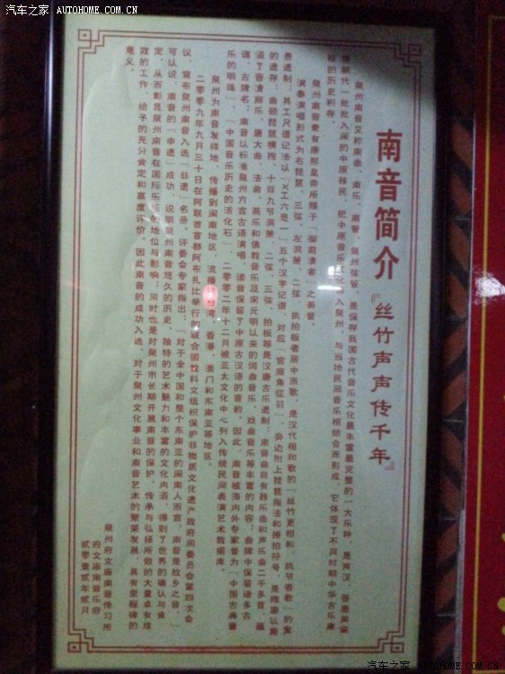 泉州南音起源于唐,形成于宋,主要流行于闽南及台湾、南洋群岛华侨居住地区。 泉州南音:又称“南曲”,“南乐”、“南管”、“弦管”,被称为音乐文化的“活化石”,唐代琵琶普遍用拨子,且是横抱姿势,泉州南音至今保持这一遗制。南音中所用的“拍板”及其演奏方式与敦煌壁画中的伎乐图一样。南曲主要流行于泉州市、闽南晋江、龙溪和厦门市,在台湾及南洋群岛华侨居住的地方也很盛行。