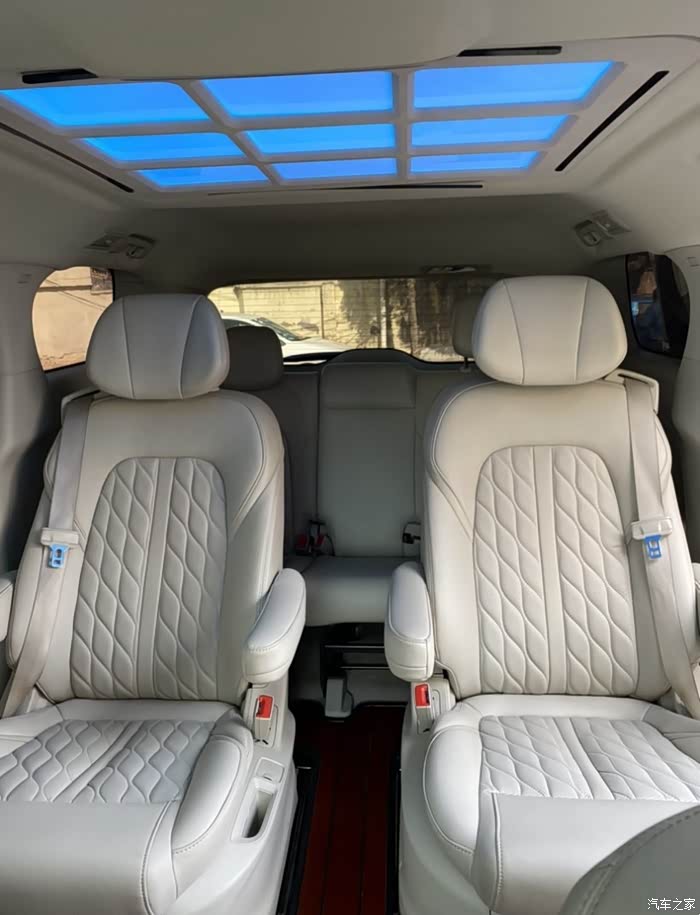 本人不喜欢花里胡哨的改装,而且论坛里边儿都是那些商家发的改装帖子做广告,本人也去改装店看过那些所谓的航空座椅,没有原车座椅的骨架做的耐用。山寨版汽配风比较强,而且换了航空座椅以后进出第三排,不是特别方便,老婆抱着孩子两边的扶手也比较碍事儿,不如原车的航空座椅媳妇抱着孩子直接把两边扶手拿起来什么也不影响,而且原车的座椅质量和舒适度就挺好,第三排想换沙发床的,但是换了沙发床后面加上轨道以后个子比较高的人坐上去会影响头部空间,所以本人改装基本上以原车风格为主,不想做太多的改变,简简单单就挺好。