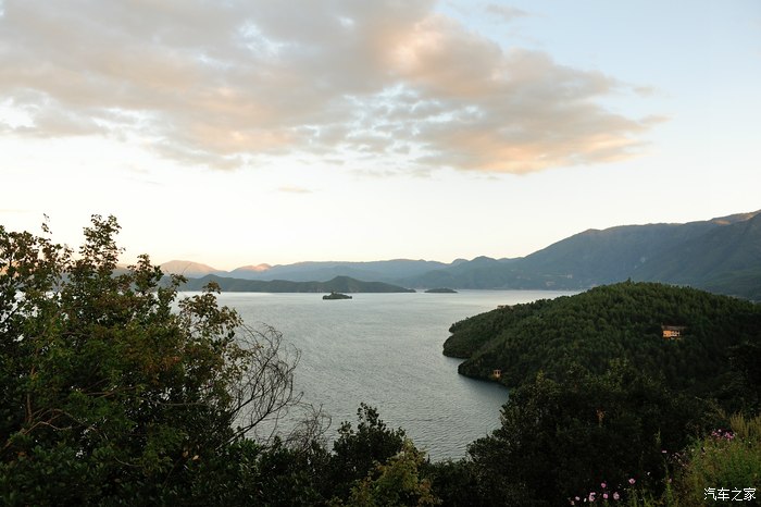 远处的女神山,在夕阳下像是被烫了一层金一样