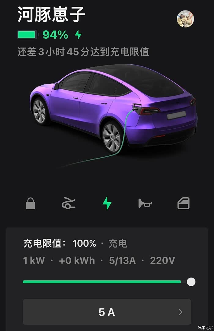 随车充是3KW的,用最大充电电流13安的话,大概相当于每小时充3度电,平时只要不着急用车,我都会设定为5安最小电流养生。