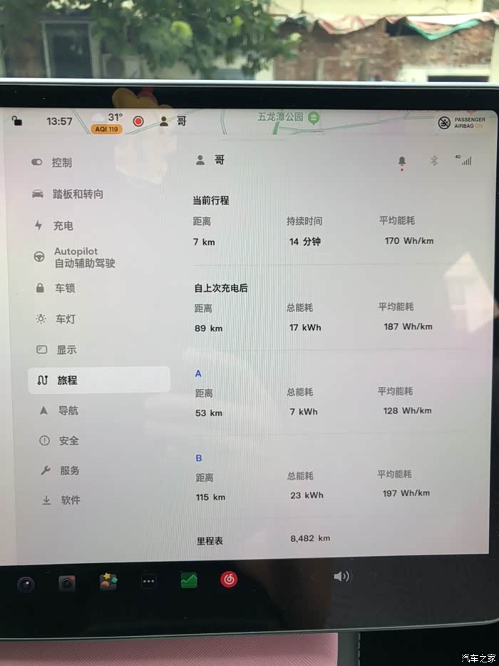 其实电耗主要取决于脚法、空调和速度。我是5.6秒的标Y,始终放在标准加速模式,不开空调的话,市区可以轻松跑赢表显。高速能耗主要和速度和空调有关,100-110定速AP区间和110-120区间能耗差异是很大的,基本上100-110定速AP区间,高速正常能耗在150左右,110-120区间能耗在190左右,是比较正常的。