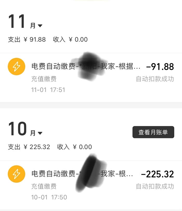 正好这两个月试了试家充和第三方的费用对比,在家充电的9月和没在家充电的10月,家里电费分别为225.32元和91.88元,差价为133.44元,基本上就是充电所用的电费。