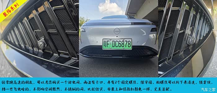 这款防虫网,空调出风口纱网,比较好,颜色和原车的颜色一样,安装上都看不出来是单独加装的,背面有3个卡扣,先是卡进去,然后再用固定的这个螺丝固定,设计的很巧妙,安装也很方便,这个对于高速、夜路多的朋友用处应该很大,至少虫子、杂物没有进去的多,对于空调散热影响不是很大。