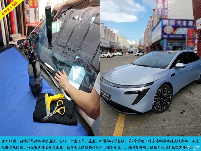 贴膜找了个专业的地方贴的,没有贴金属膜,说是对信号啥的有影响,前2个窗贴膜颜色有点深,晚上确实对驾驶有影响,有时候倒车的时候我还得开窗子,建议车友前2个窗尽量还是贴浅色的吧。贴膜下电,前挡就很方便的贴。