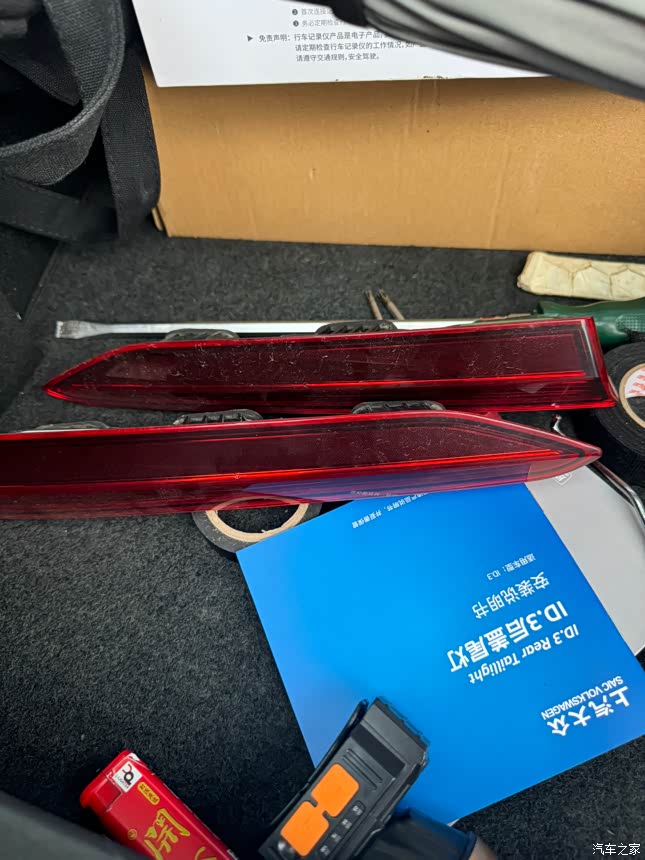 加装过程比较简单,一个人操作,大概也就20分钟,也不用刷机什么的,线束对插到尾灯线束上就行了,不过需要破皮重新接线,并不是并联,也是串联上去。大致过程我总结下来有以下几点: